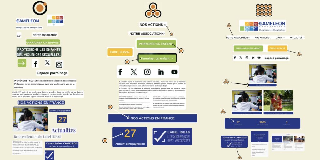 Lors de la phase préparatoire, j’ai analysé le site de l’ONG CAMELEON Association, dans le cadre du choix de trois ONG traitant des violences sexuelles sur mineurs.